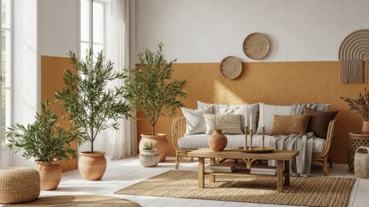 - Les matières : terre cuite (zelliges irréguliers, pots, lampes), lin froissé, laine brute, bois flotté ou brûlé, rotin vieilli. Évitez tout ce qui brille.
