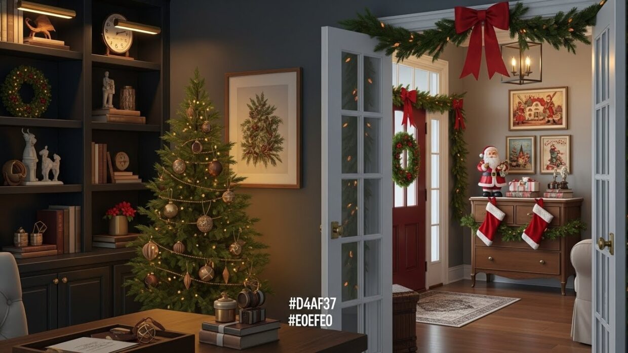 Chaque année, quand décembre pointe le bout de son nez, j’ai cette envie irrésistible de rendre chaque coin de la maison plus chaleureux, plus accueillant. Cette fois-ci, j’ai décidé de chouchouter particulièrement mon bureau – cet espace où je passe tant d’heures – et notre entrée, la première impression que l’on offre à nos invités. Le résultat ? Une ambiance moody et enveloppante dans le bureau, et un esprit Père Noël nostalgique dans le foyer. Suivez-moi pour cette visite détaillée, pleine d’idées faciles à reproduire chez vous.